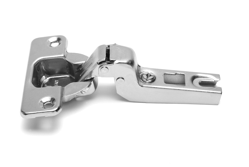 Петля вкладная MS Slide-On от FGV (производство Италия) обеспечивание открывание на 110°. Петельная часть створки упирается торцом в соседнюю стенку. Основание такой петли имеет больший изгиб, по сравнению с полунакладной петлёй.